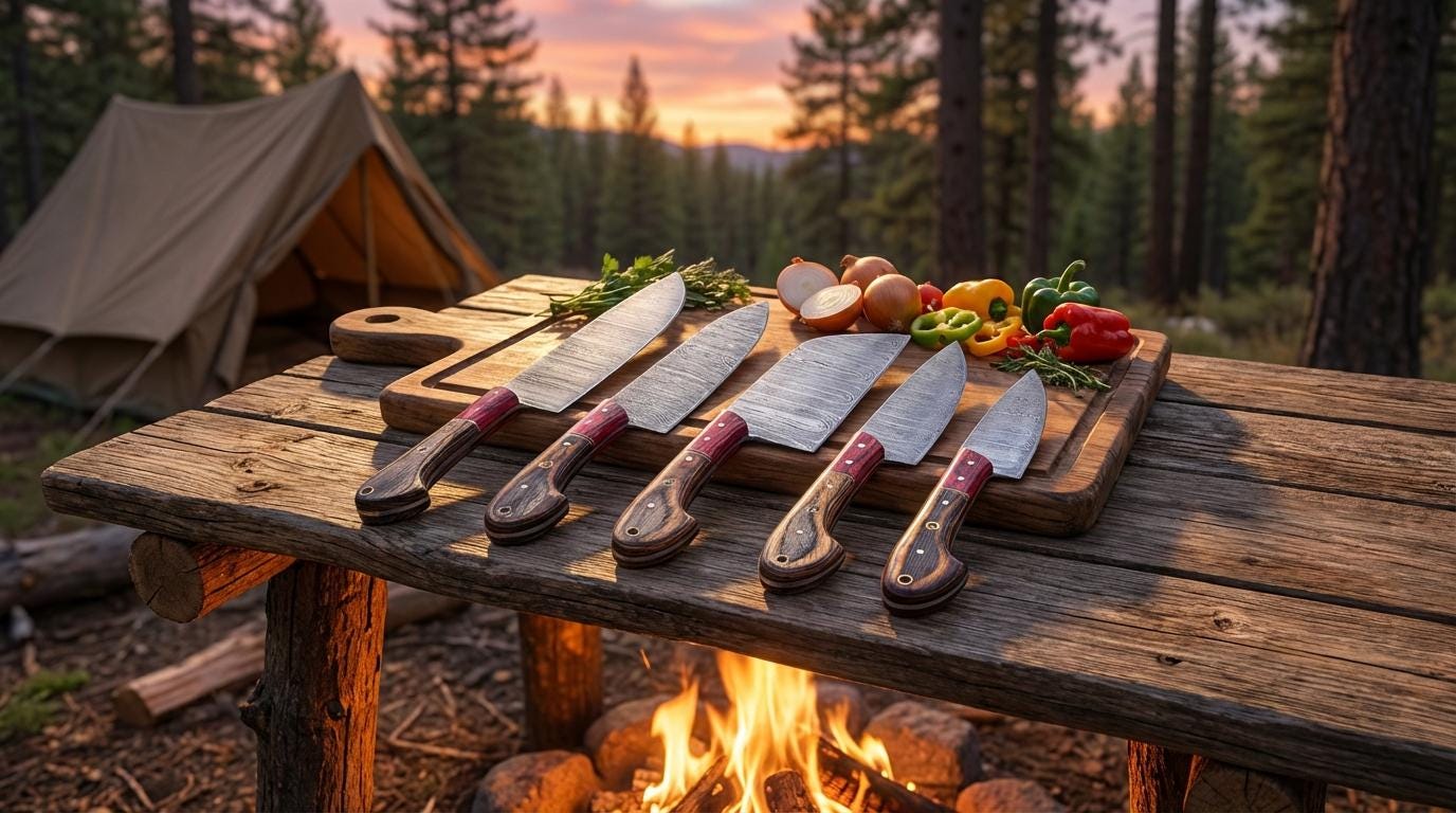 Hand-Forged Damascus Chef Knife Set, 5-Piece