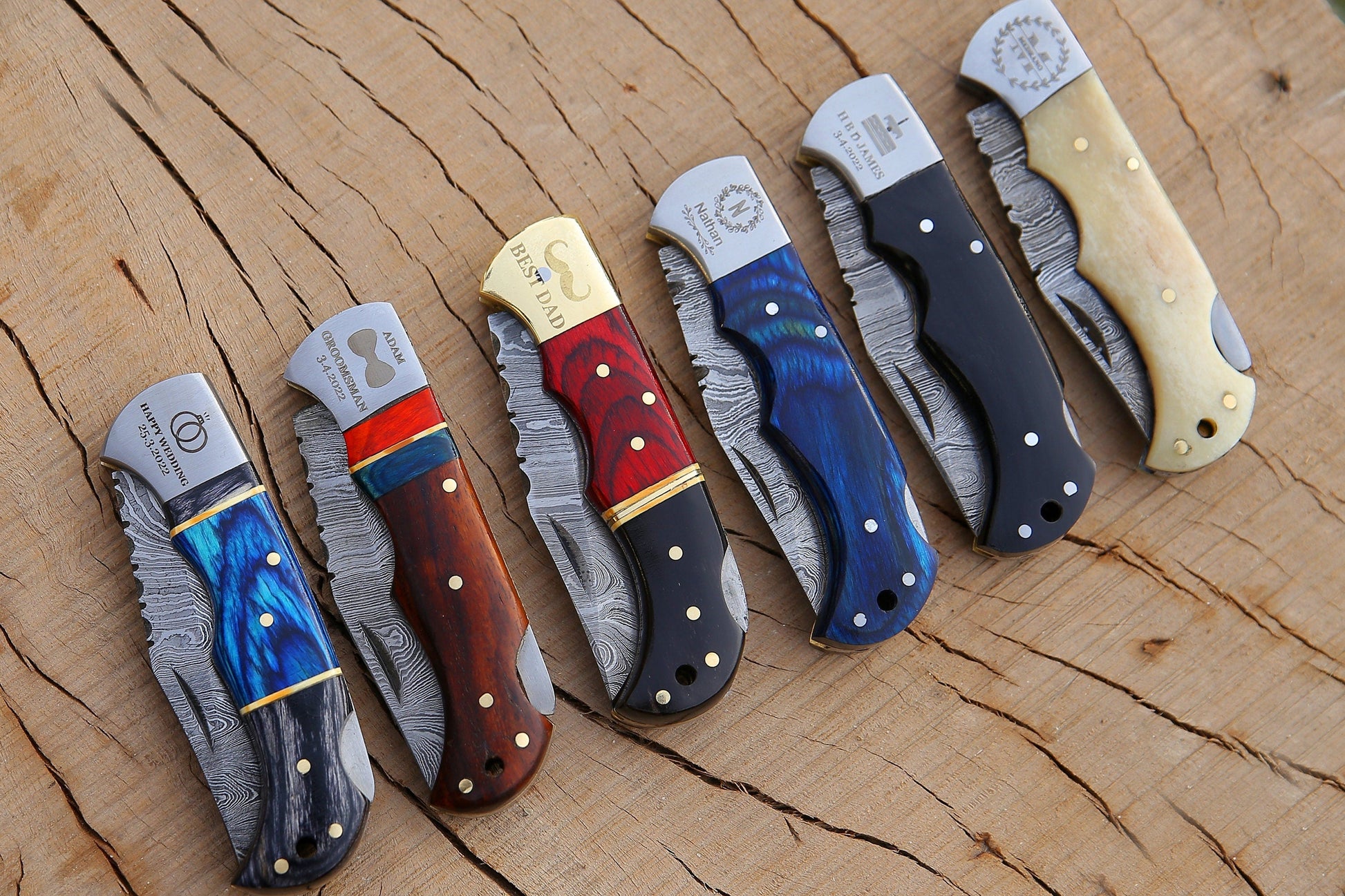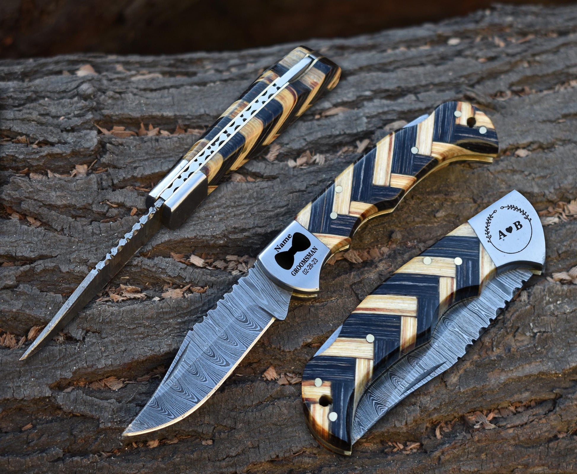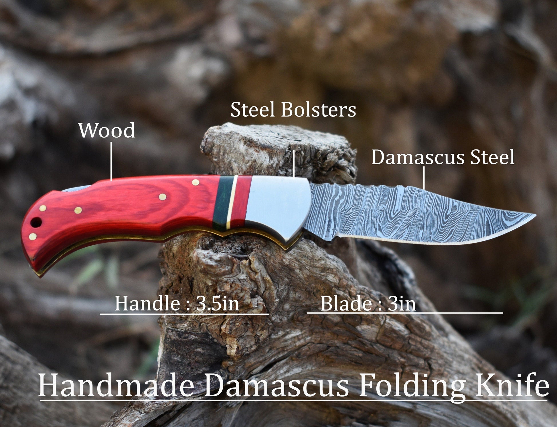 Handmade Damascus pocket knife rosewood handle birthday gift folding knife groomsman gift anniversary wedding father's day gift for lover Christmas gift.