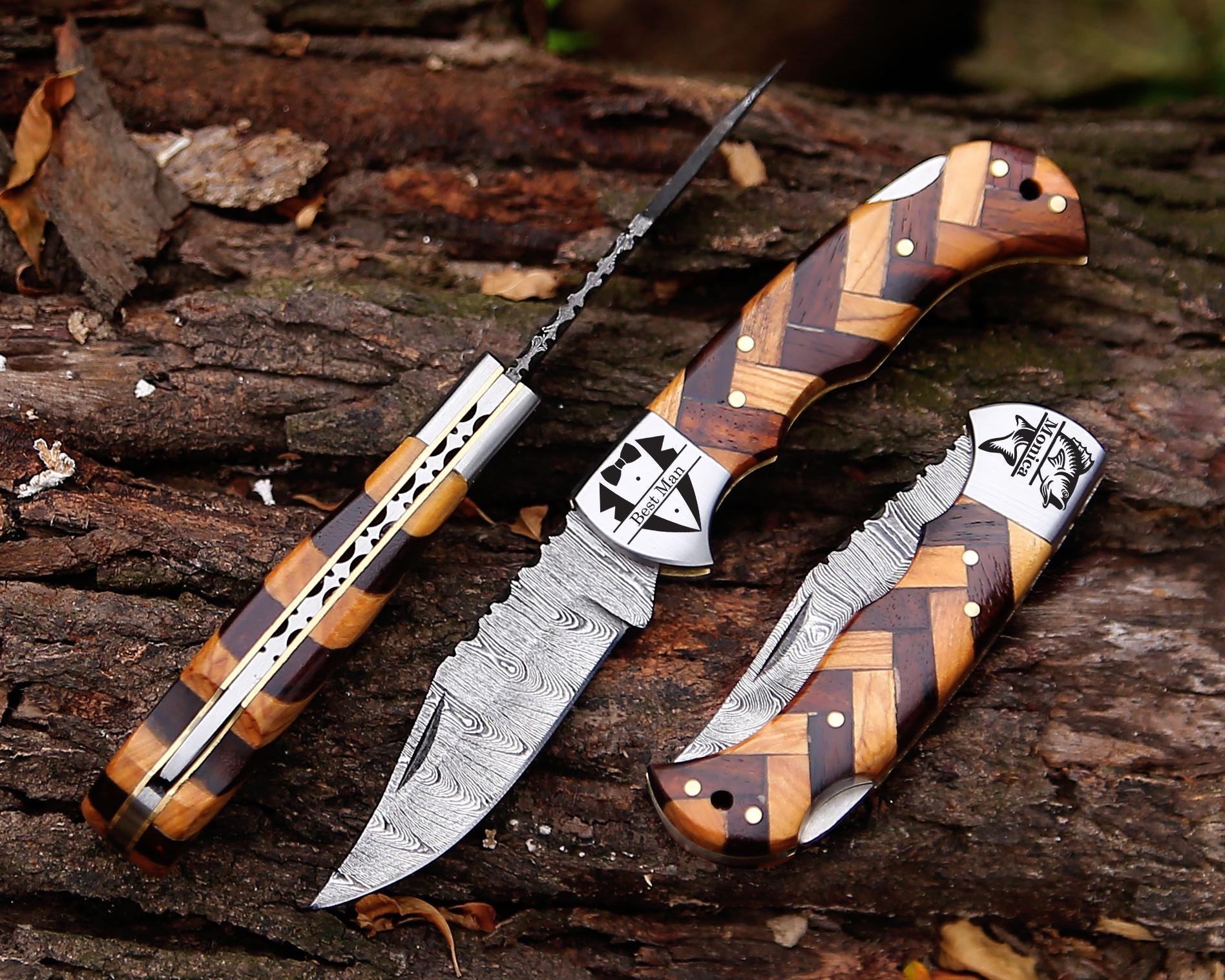 Handmade Damascus Folding Pocket Knife – Rosewood Handle